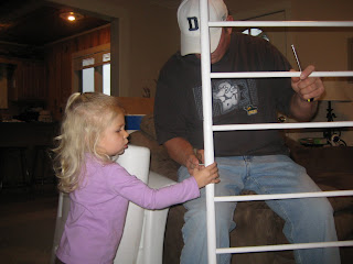 Jace also loves to dance by waving his arms and crouching his legs and bouncing. He loves to "go crazy". Tell him to "go crazy" and he will wave his arms and shake his head. He loves to play with Jordyn's kitchen set. He loves to climb the steps. If we leave the gate down, he notices immediately! He loves to chase our cat, Wylie, around the house. He also loves to make a lot of noise by banging his toys against anything he can think of (must be a boy thing).